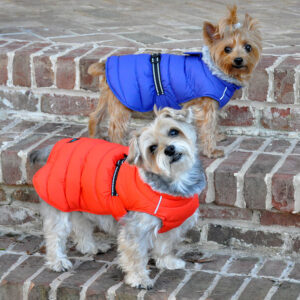 These Puffer Coats are perfect for all types of outdoor adventures. Made with a waterproof exterior, this coat is perfect for keeping your dog dry. Lined with thick fleece and filled with warm fiber insulation, our Puffer Coat is perfect for any type of cold weather. It is specifically designed for dogs of all sizes, fitting dogs from 3 pounds to 150 pounds and larger depending on chest size. With an easy slip over the head and a snap of the adjustable buckle over the back, the Puffer Coat can fit dogs of all shapes and sizes.