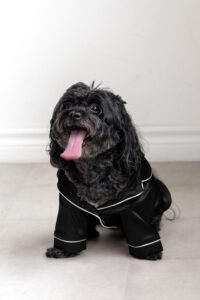 Pet Set: Black silky pet pawjama with snap buttons