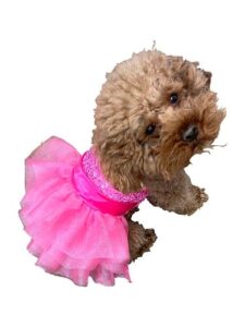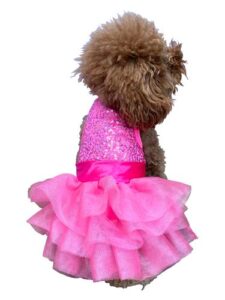 The Dog Squad’s Zsa Zsa Fufu Tutu dog dress is our version of Barbie’s favorite dress! This dress is perfect for those girly girl pups who love to be pampered and shown about! The cotton/lycra bodice is full of sewn sequins and the skirt is layers of tulle for a fluffy look your customers will love. Made in the USA